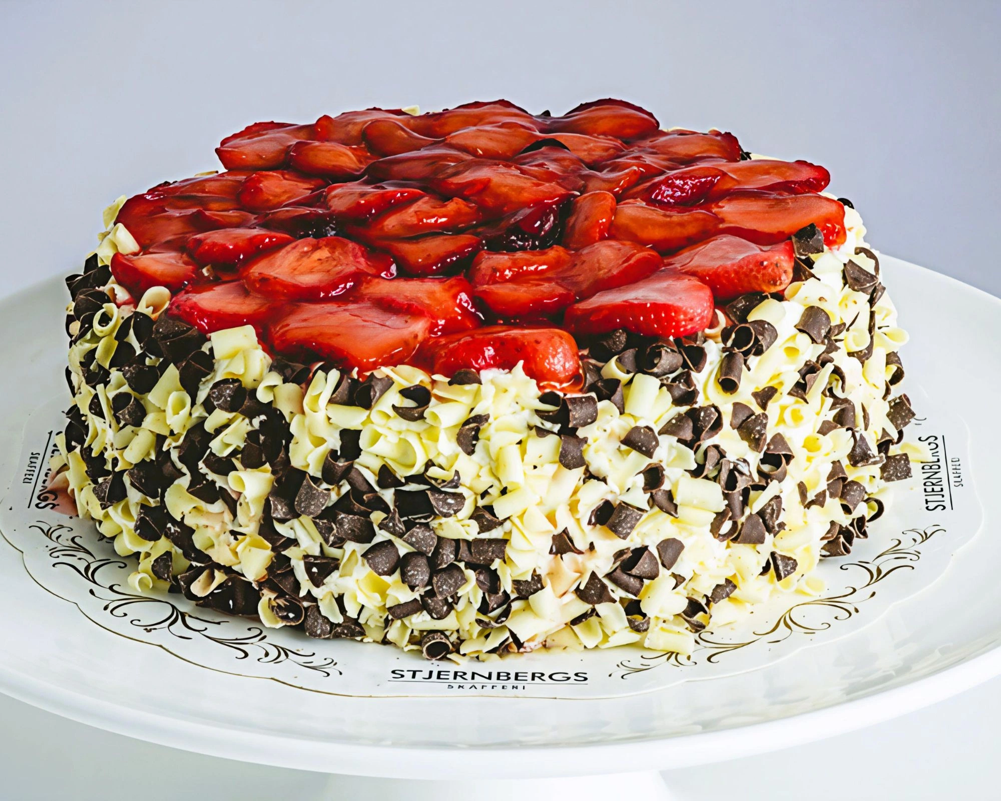 Upplev smaken av svensk sommar med vår populära Jordgubbstårta. Vår tårta bakas på traditionellt vis med fluffiga sockerkaksbottnar, len vaniljkräm och frisk jordgubbssylt. Tårtan täcks med ett generöst lager lättvispad grädde och toppas rikligt med färska jordgubbar (under säsong, övrig tid används frysta bär av högsta kvalitet). En oemotståndlig klassiker som passar perfekt till midsommar, födelsedagar eller sommarfikat.